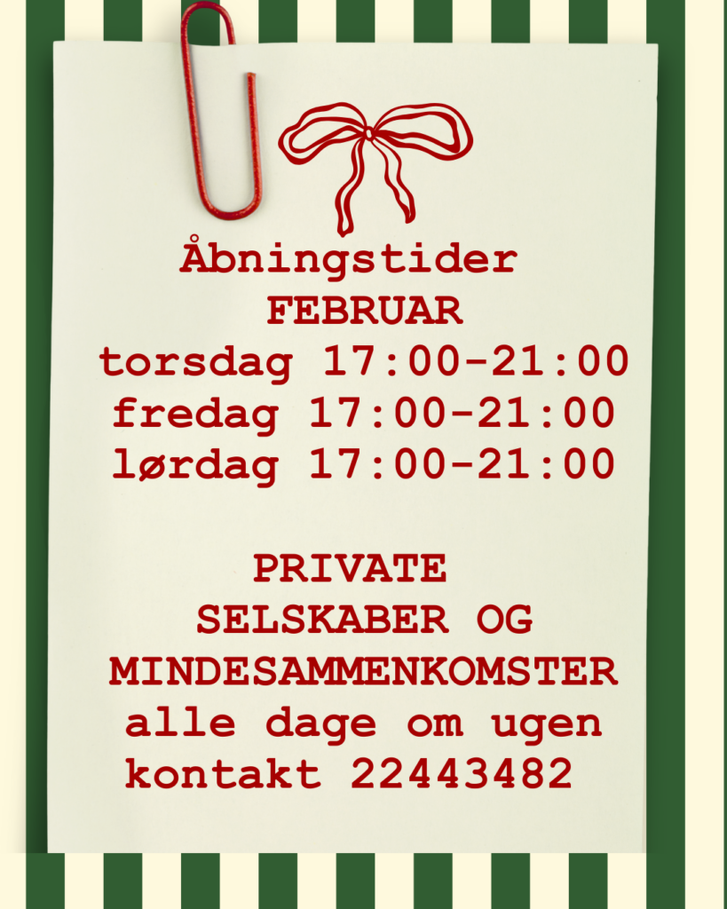 Åben for mindesammenkomster og selskaber alle dage om ugen. Kontakt 22443482